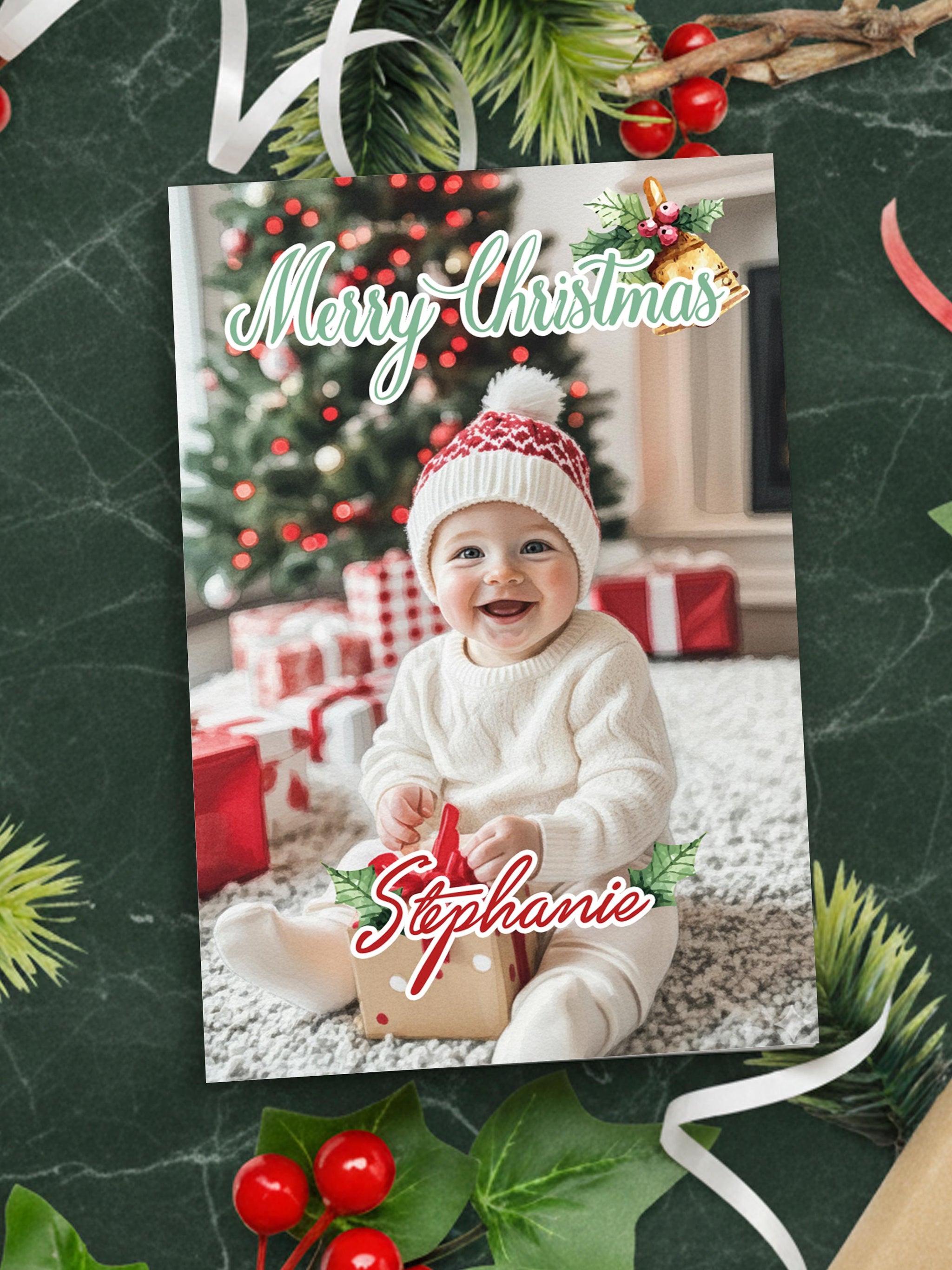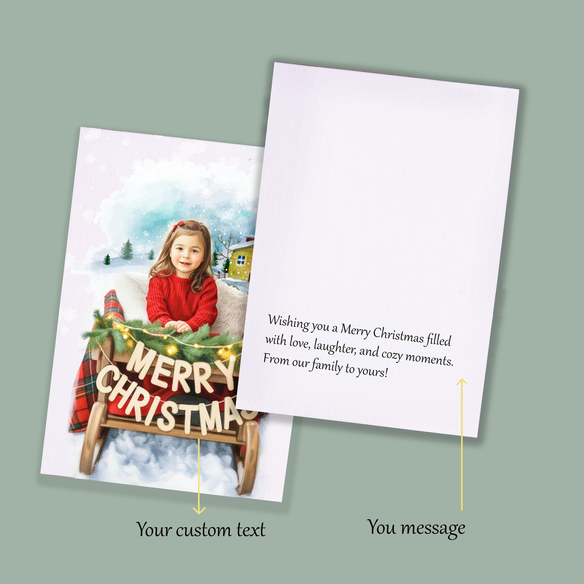 Bring holiday cheer to your loved ones with a personalized family portrait Christmas card that captures your favorite moment of the year.