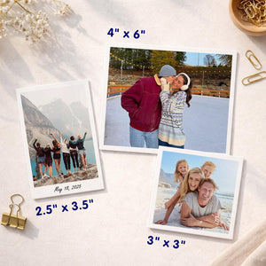 - Sizes Available: 4" x 6" (10 x 15 cm), 2.5" x 3.5" (6 x 9 cm), 3" x 3" (8 x 8 cm).
